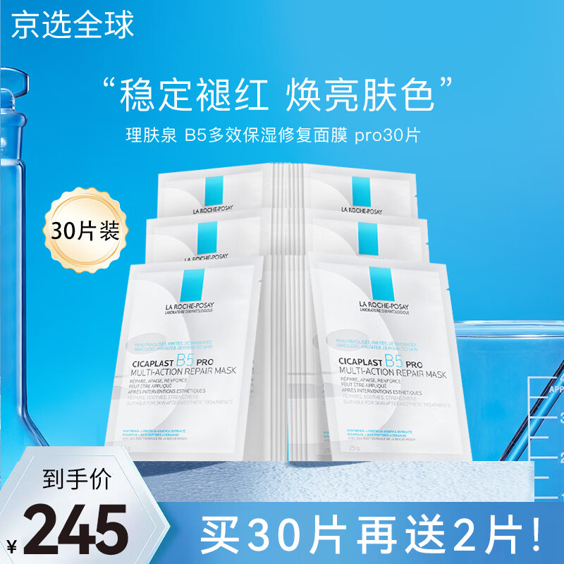 理肤泉B5 pro面膜30片 补水保湿紧急修护泛红舒缓积雪草敏感肌 【超值囤货装】30片无盒装