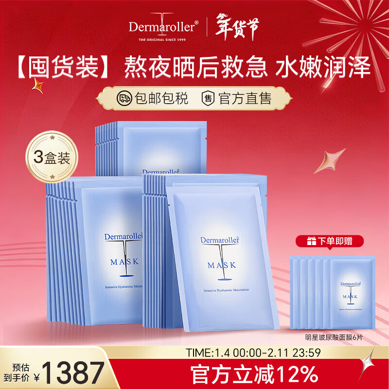 Dermaroller德国进口院线玻尿酸精华面膜补水保湿修护晒后急救舒缓维稳 10片*3盒装