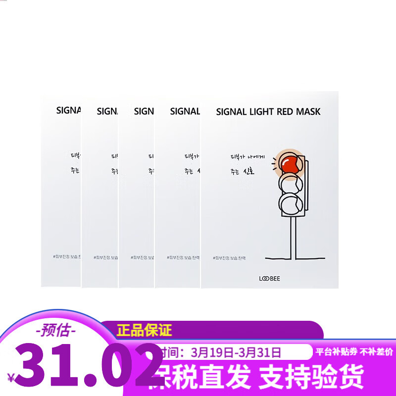 露碧(LOOBEE)韩国进口红色信号灯面膜露碧补水保湿温和舒缓女士护肤品两版随机 红色信号灯面膜5片