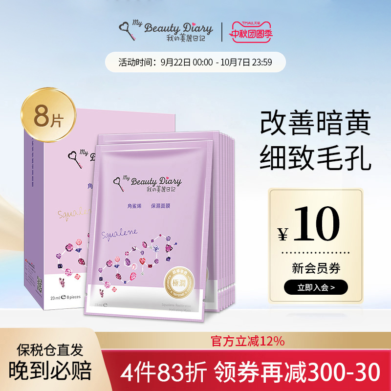 我的美丽日记面膜贴官方正品角鲨烯8片补水焕采保湿提拉锁水女士