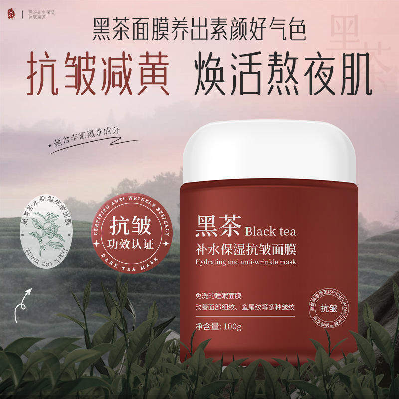 黑茶睡眠抗皱补水保湿涂抹式免洗暗沉熬夜烟酰胺面膜膏涂抹面膜