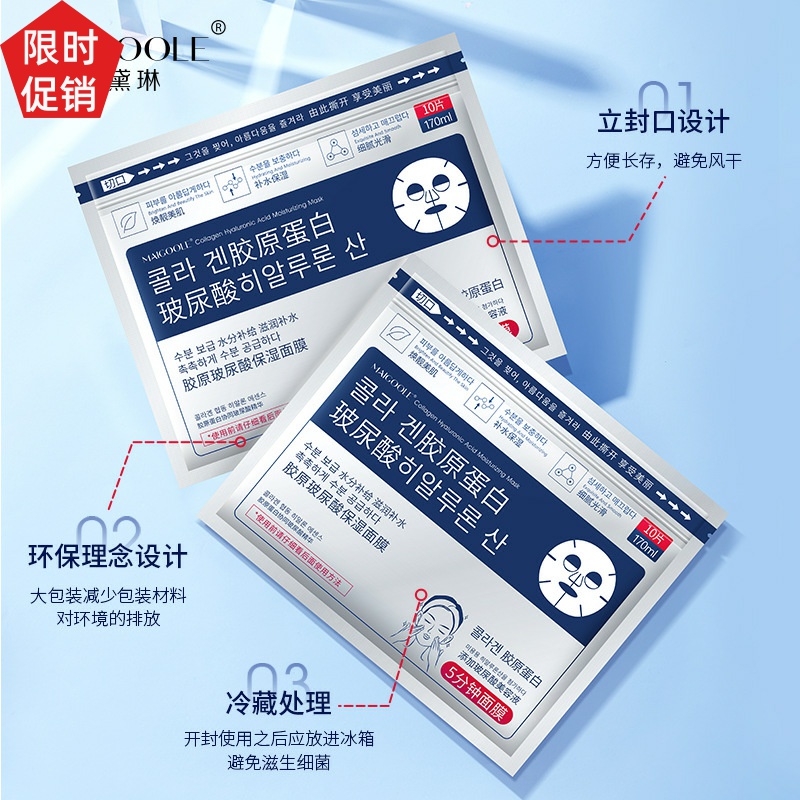 促销20片玫黛琳胶原玻尿酸保湿面膜补水紧致抗皱抗衰老去黄气暗沉