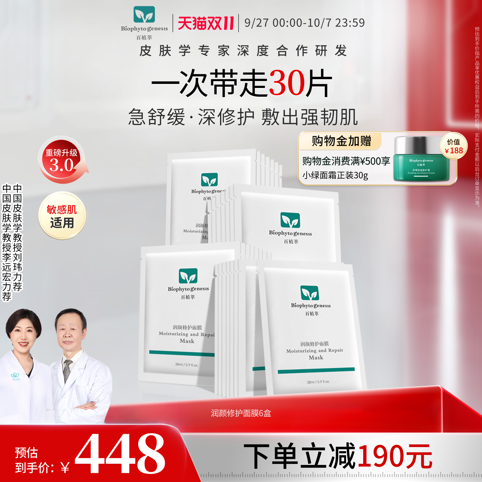 【皮肤专家力荐】百植萃润颜修护面膜舒缓修护肌肤保湿补水面膜