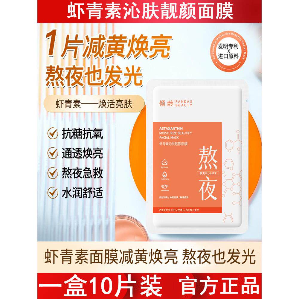 倾龄虾青素沁肤靓颜面膜10片抗氧抗皱淡纹紧致祛黄提亮舒缓护肤品