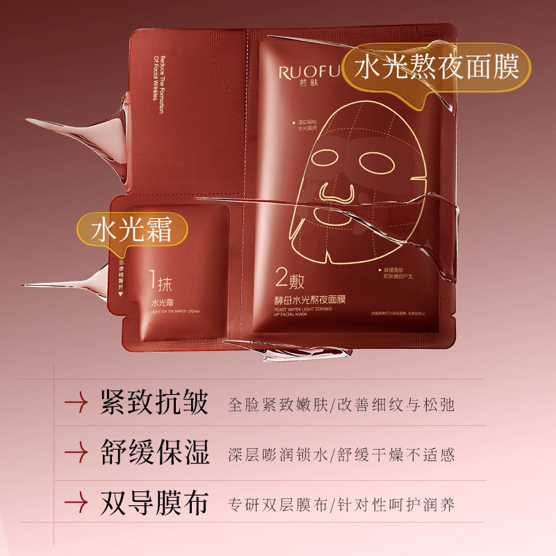 新款推荐若肤酵母水光熬夜面膜熬夜急救补水抗皱提拉紧致舒缓