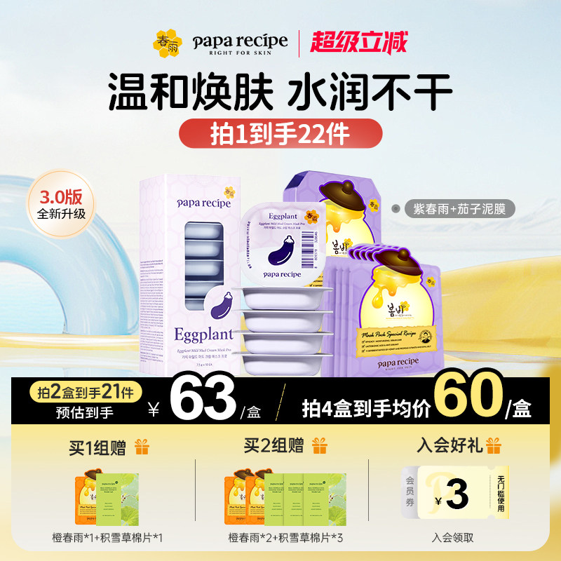 韩国春雨茄子清洁泥膜10粒+紫色春雨蜂蜜面膜去角质收缩毛孔10片