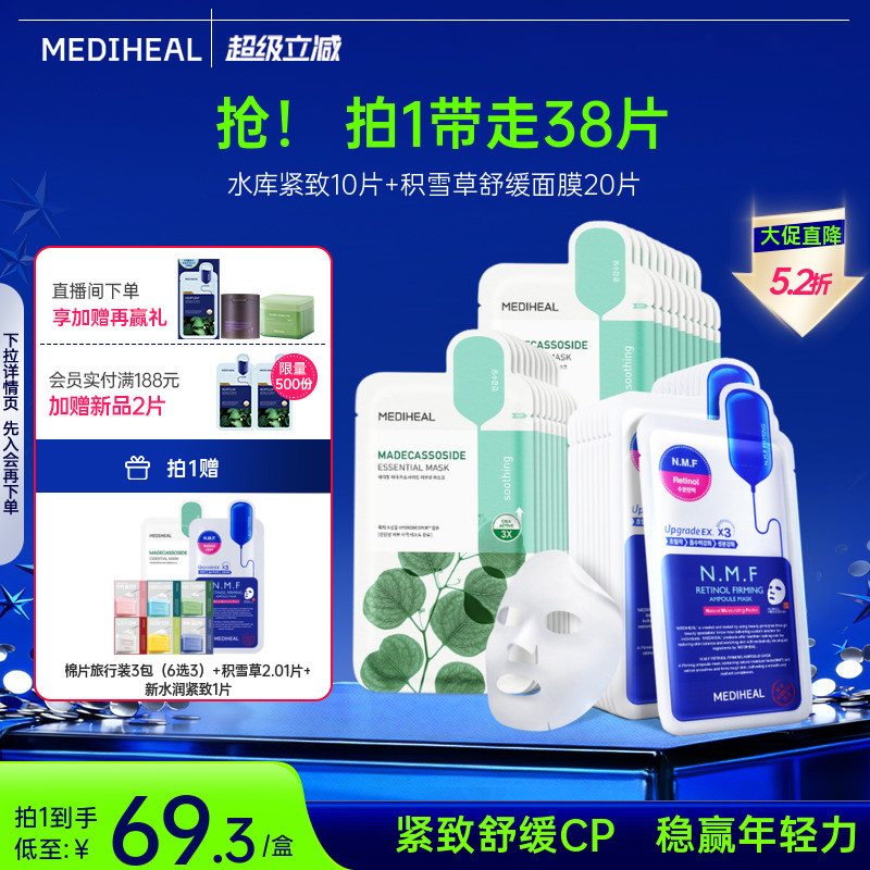 【热销爆款】美迪惠尔官方水润面膜新积雪草面膜舒缓保湿新品