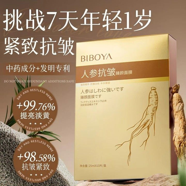 30片人参面膜抗皱紧致胶原蛋白去淡化细纹补水保湿提亮肤色去黄气