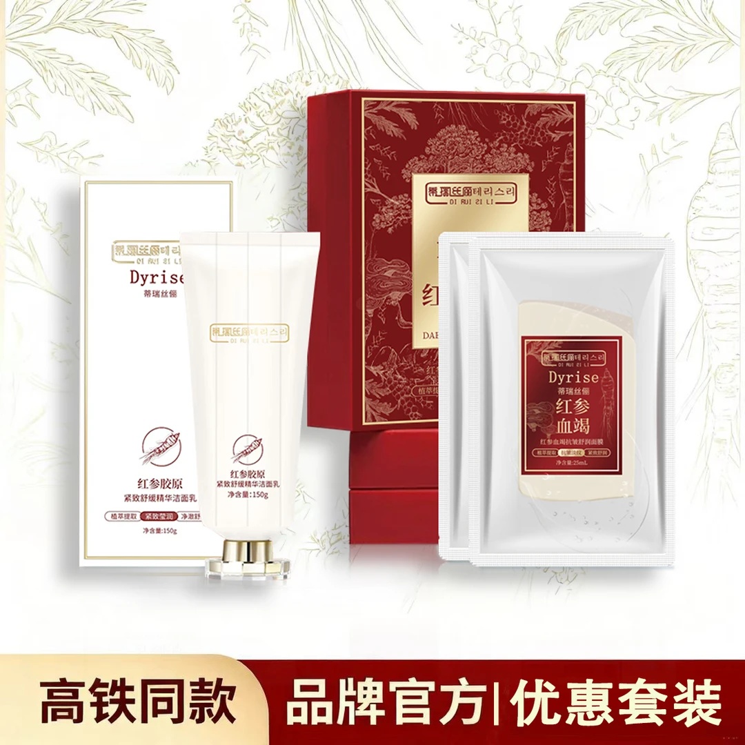 【高铁人气】Dyriso蒂瑞丝俪红参面血揭面膜胶原洁面乳组合套装