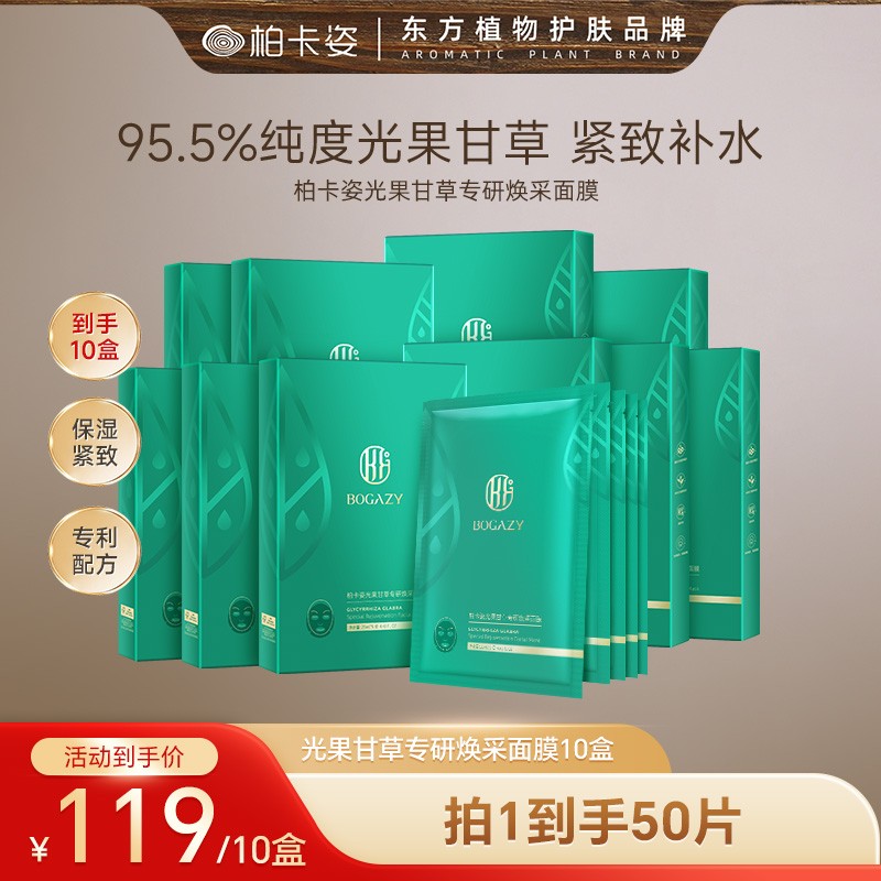 柏卡姿 光果甘草面膜10盒共50片 熬夜紧致保湿滋润补水