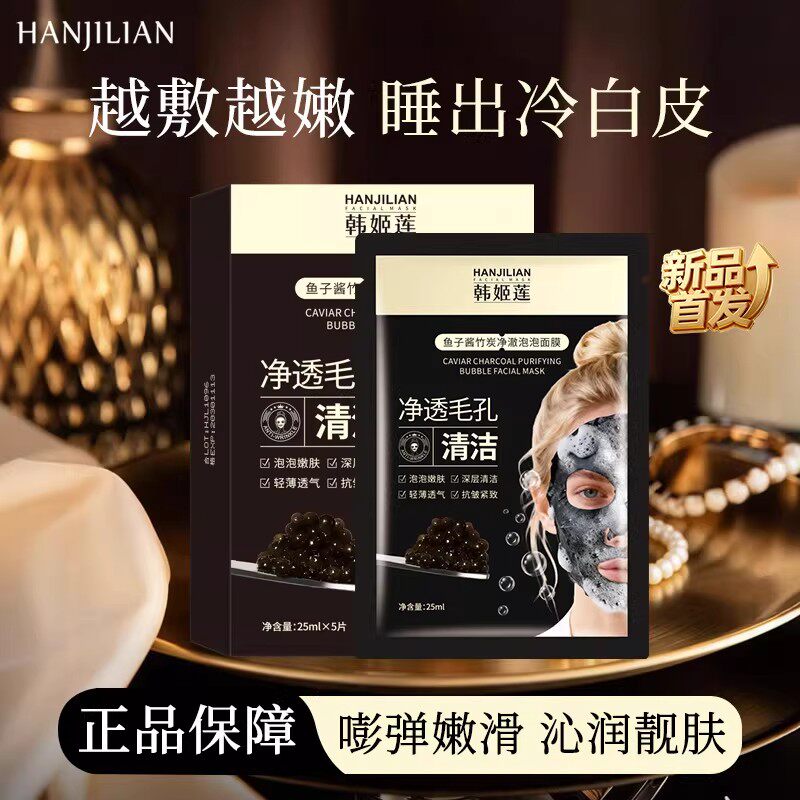 韩姬莲鱼子酱竹炭净澈泡泡面膜贴片式清洁补水净透毛孔收缩毛孔
