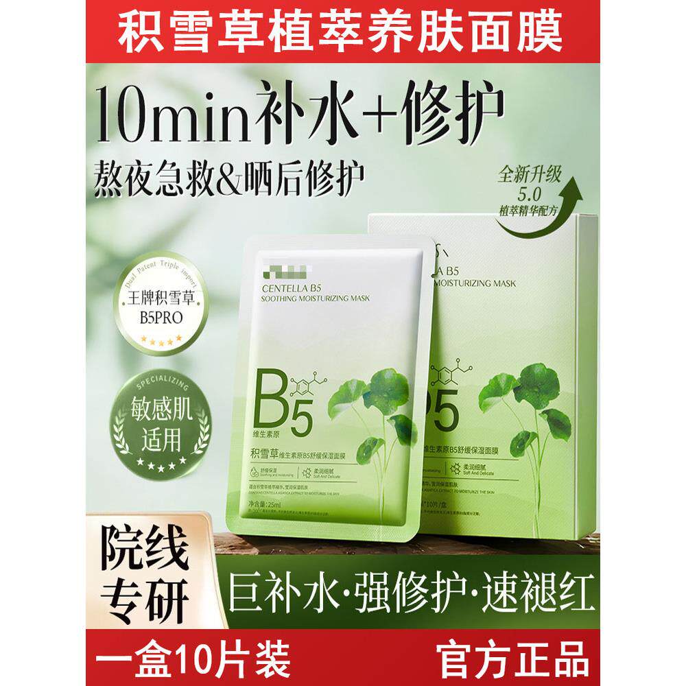 积雪草清盈透嫩面膜10片装干皮补水平衡水油清爽保湿熬夜泛红舒缓