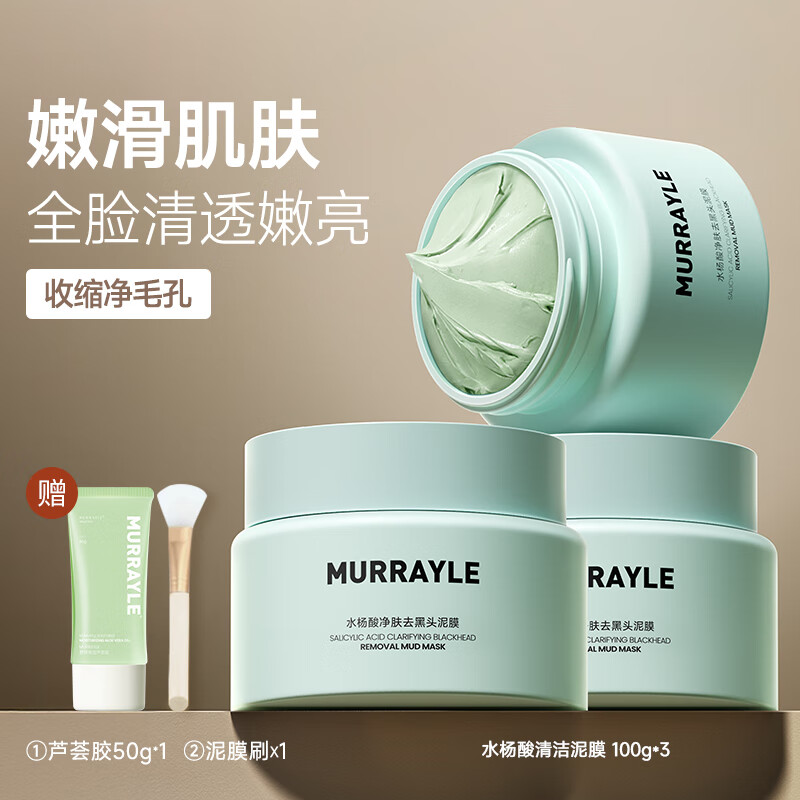 沫芮积雪草清洁泥膜去黑头收缩毛孔粉刺深层清洁面部脏东西涂抹式面膜 350g