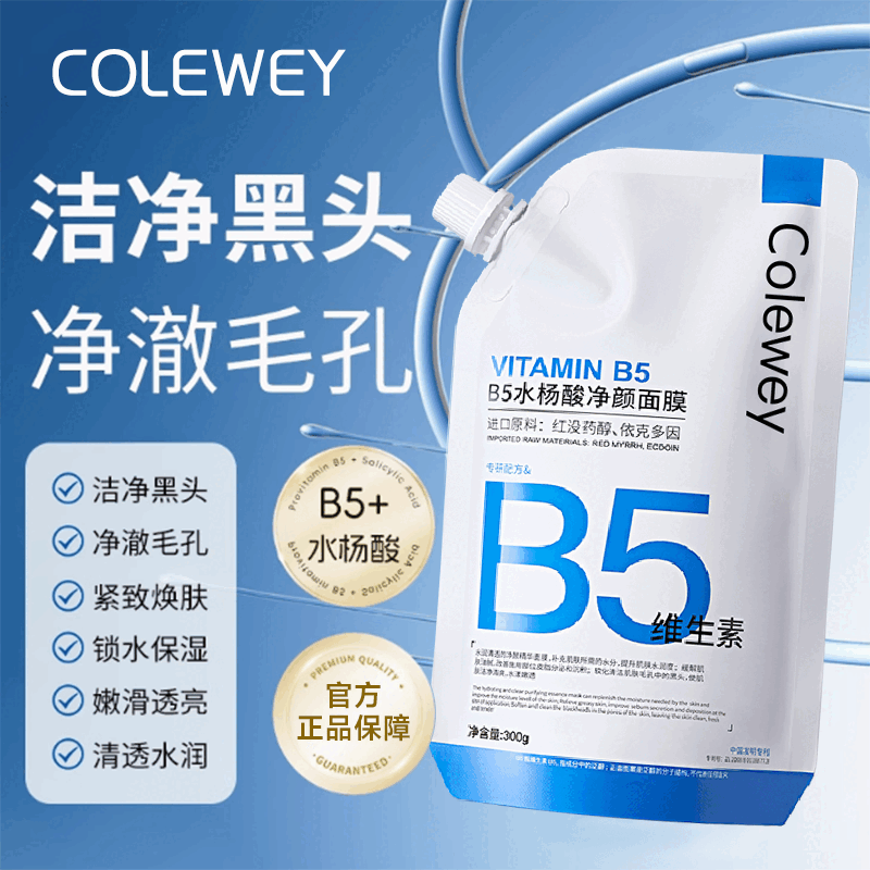 Colewey维生素B5水杨酸面膜补水清洁粉刺毛孔男女泥膜温和补水 2袋