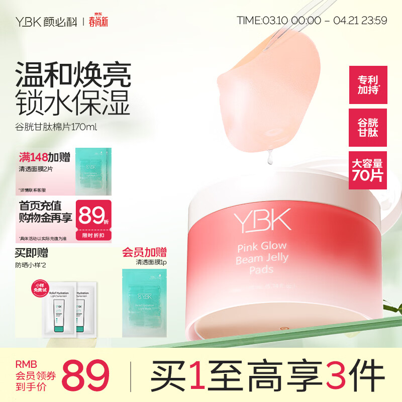 颜必科(YBK)粉韵谷胱甘肽焕亮棉片补水保湿秋冬季温和焕亮急救精华湿敷面膜女