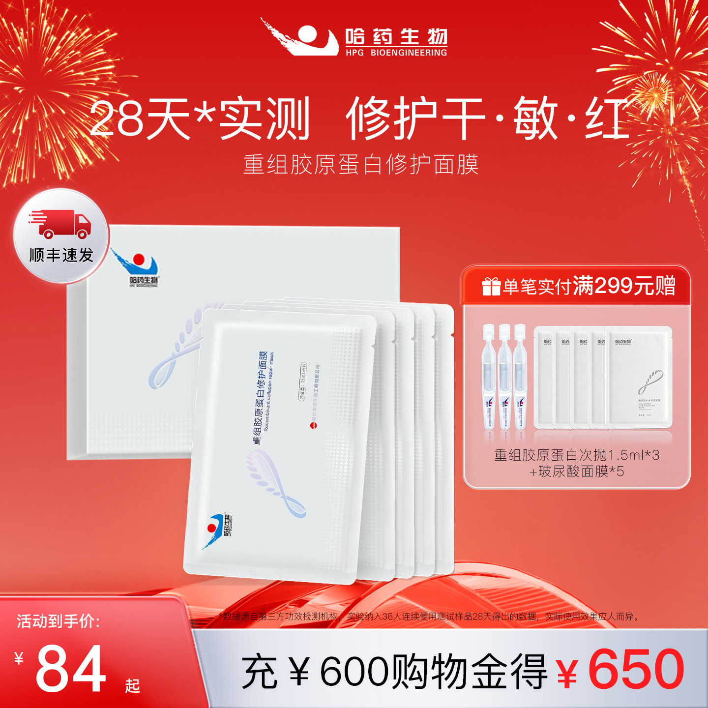 哈药生物重组胶原蛋白修护面膜淡纹抗皱舒缓保湿深层修护敏感肌