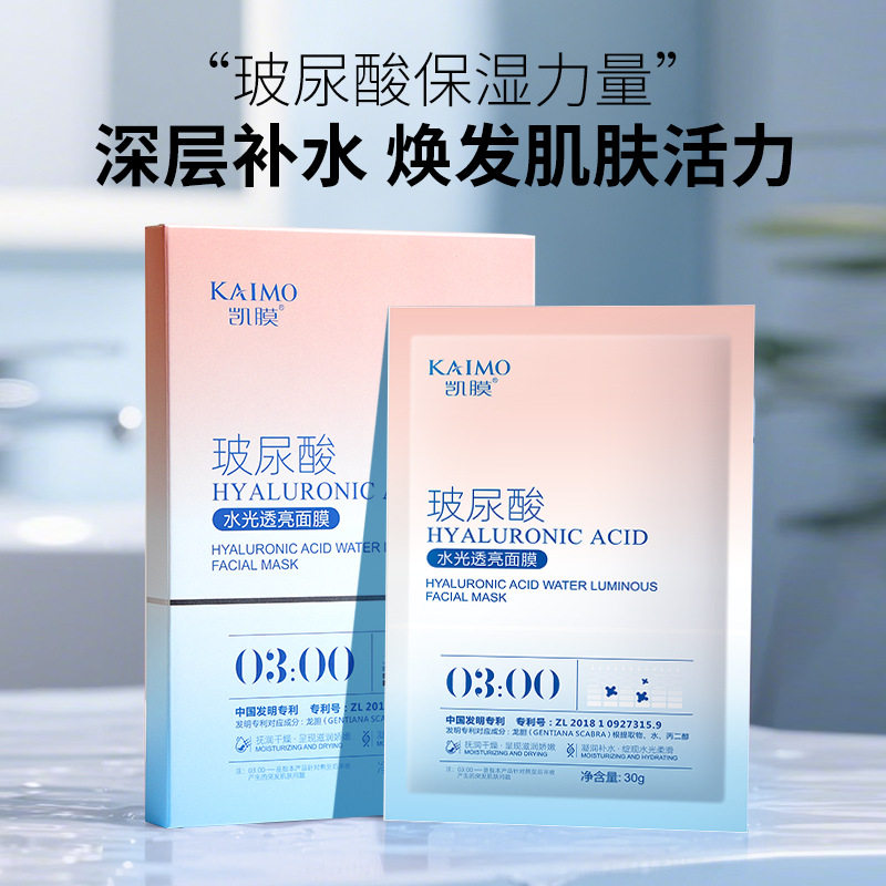 凯膜玻尿酸水光透亮面膜30g*5片/盒补水保湿提亮男女面膜
