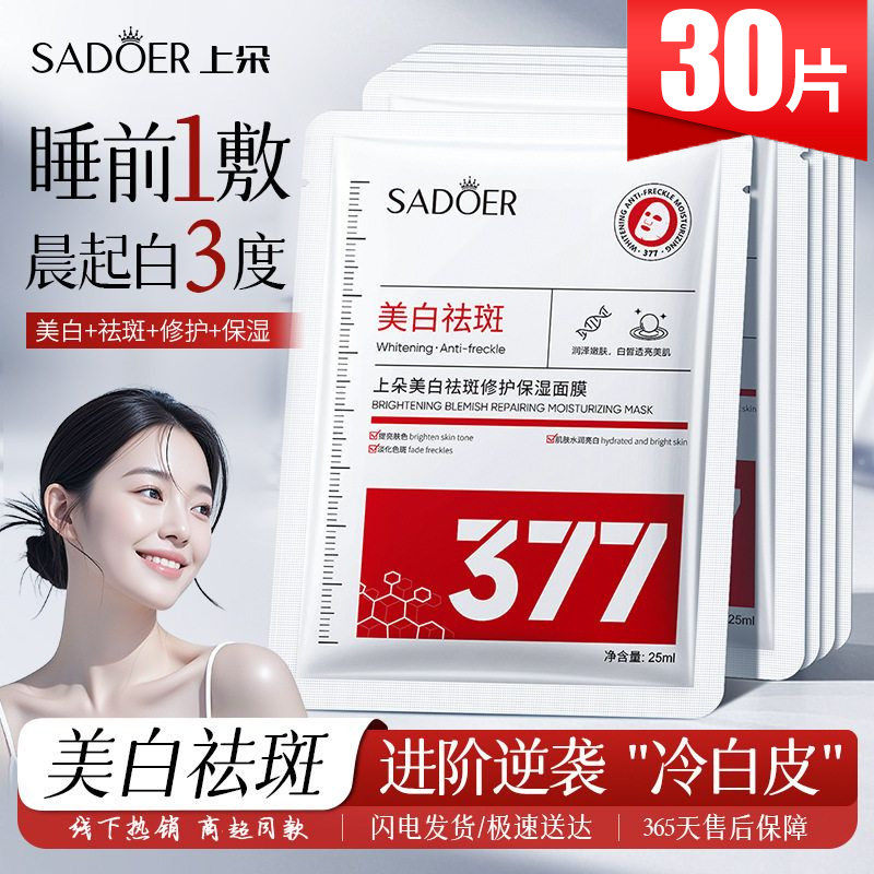 上朵377祛斑美白面膜补水滋润保湿修护提亮肤色淡斑去黄气暗沉女