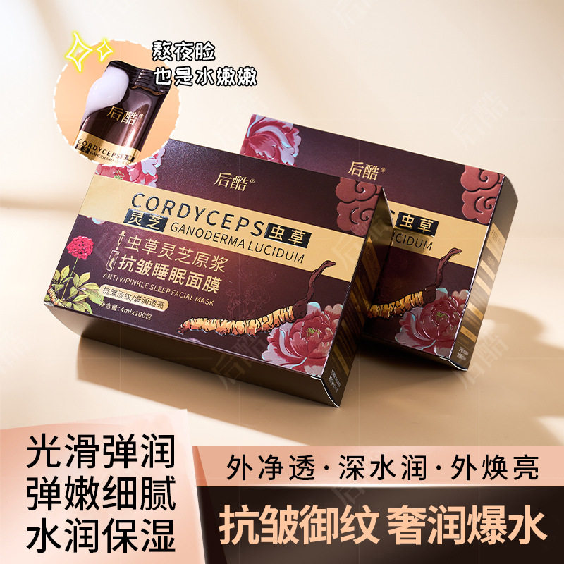 【100包/盒】后酷虫草灵芝原浆抗皱睡眠面膜水润保湿紧致养颜免洗