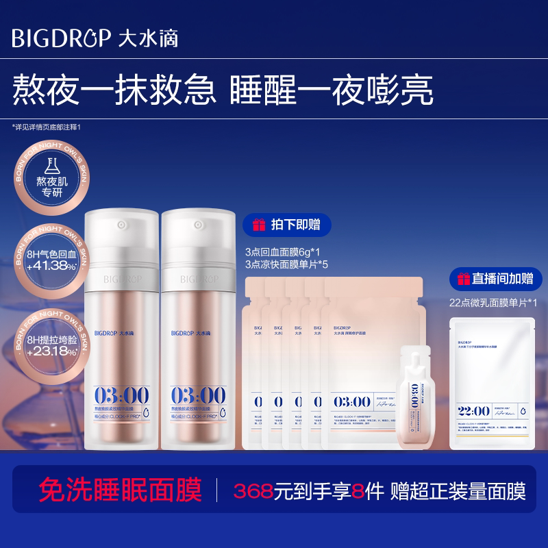 晁然推荐 | 大水滴3点回血面膜免洗熬夜修护焕亮紧致涂抹睡眠面膜