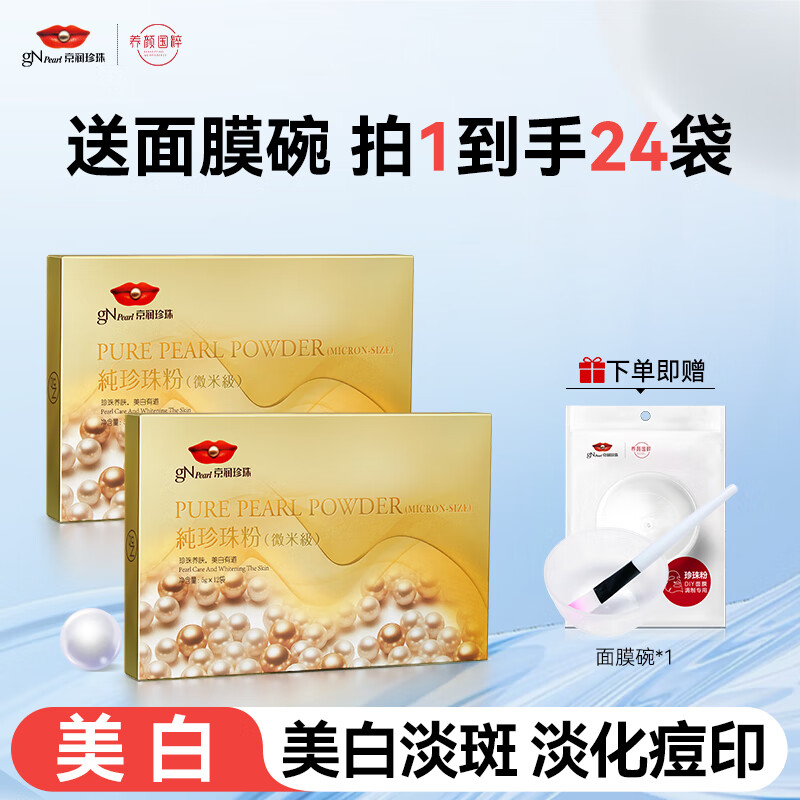 京润珍珠(gNPearl)纯珍珠粉 涂抹面膜美白淡斑去黄提亮肤色外用泥膜软膜粉 纯珍珠粉5g*12袋*2盒