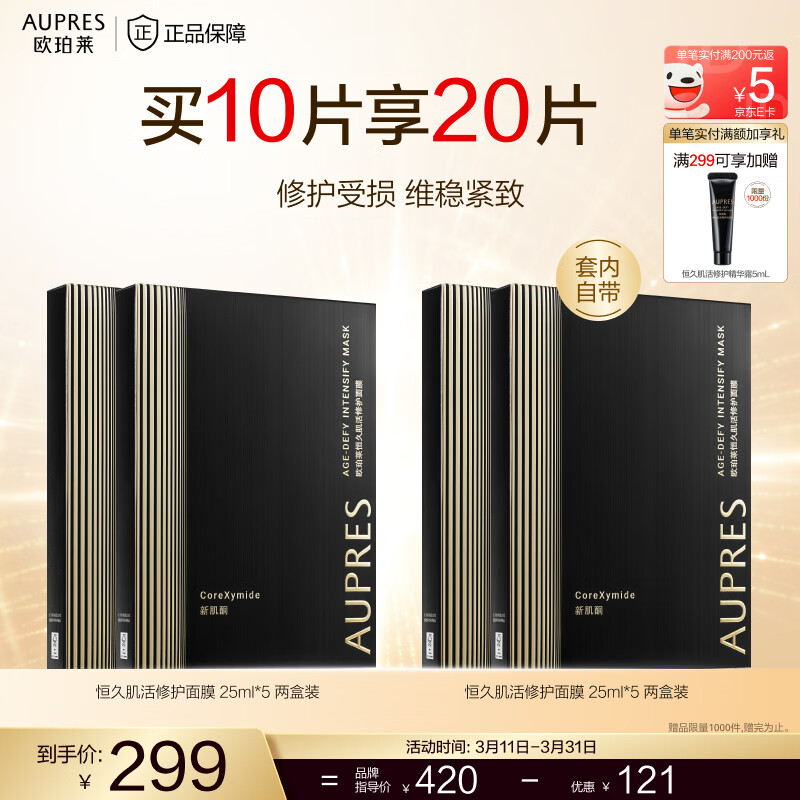 欧珀莱(AUPRES)生日礼物送女友恒久肌活修护面膜 维稳紧致抗皱淡化细纹护肤品 2盒装 10片
