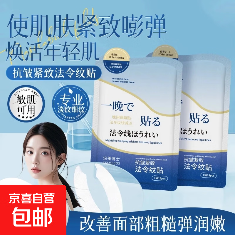 抗皱紧致法令纹贴深层女补水淡化细纹川字抬头纹保湿面膜官方正品 抗皱紧致法令纹贴18贴*3袋