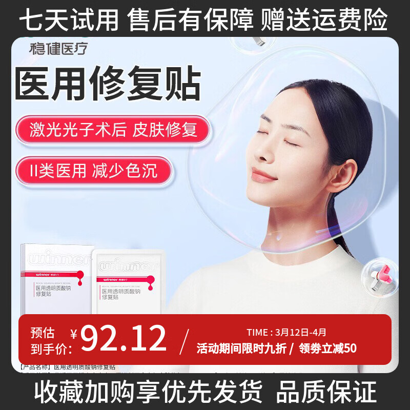 稳健医疗透明质酸钠面膜 医用重组胶原蛋白透明质酸钠复合修复贴无菌正品 透明质酸钠面膜一盒5片