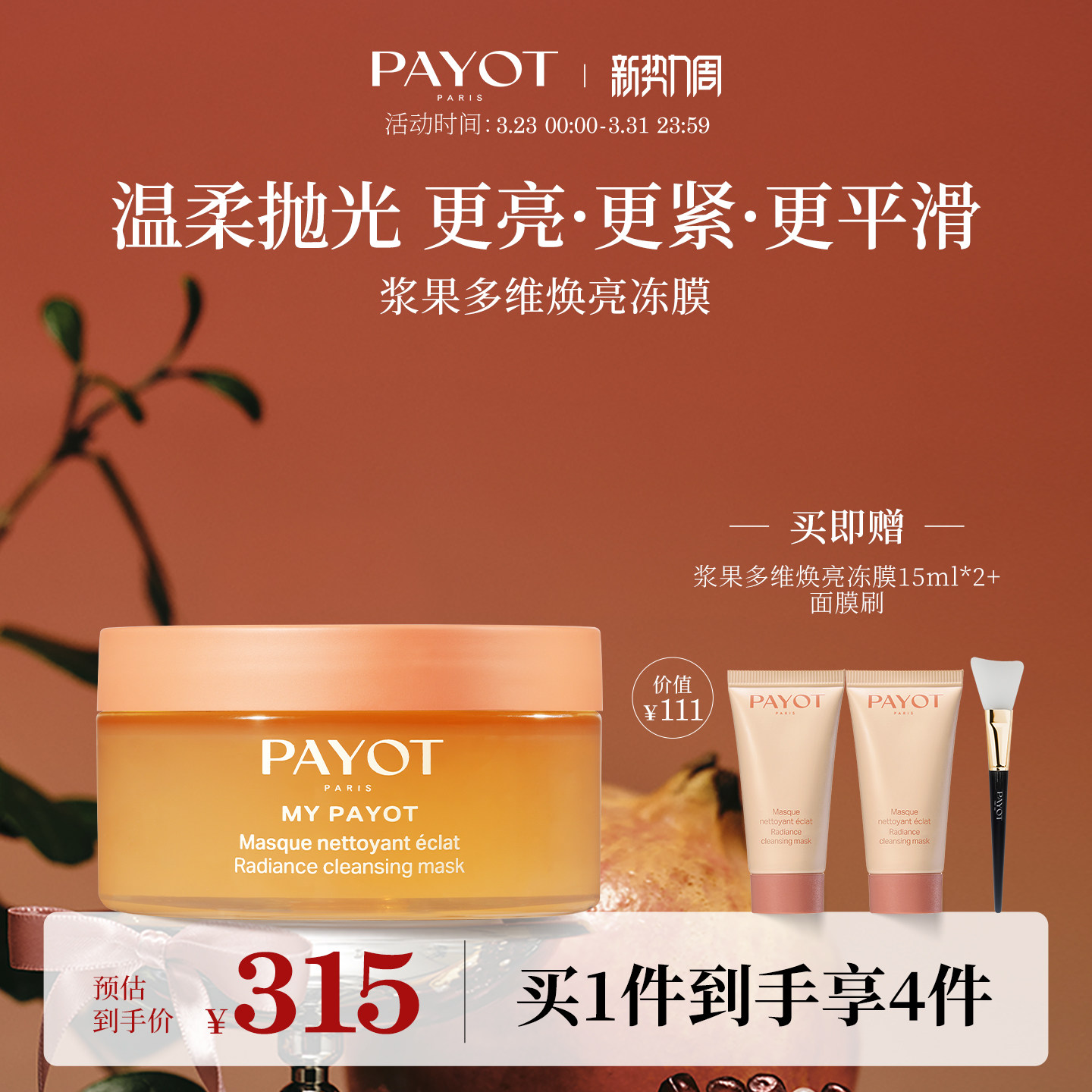 PAYOT浆果多维焕亮冻膜 100ml 晨光面膜保湿柔顺面部官方正品