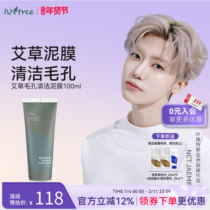 isntree艾草毛孔清洁泥膜100ml 去角质黑头清洁毛孔涂抹面膜