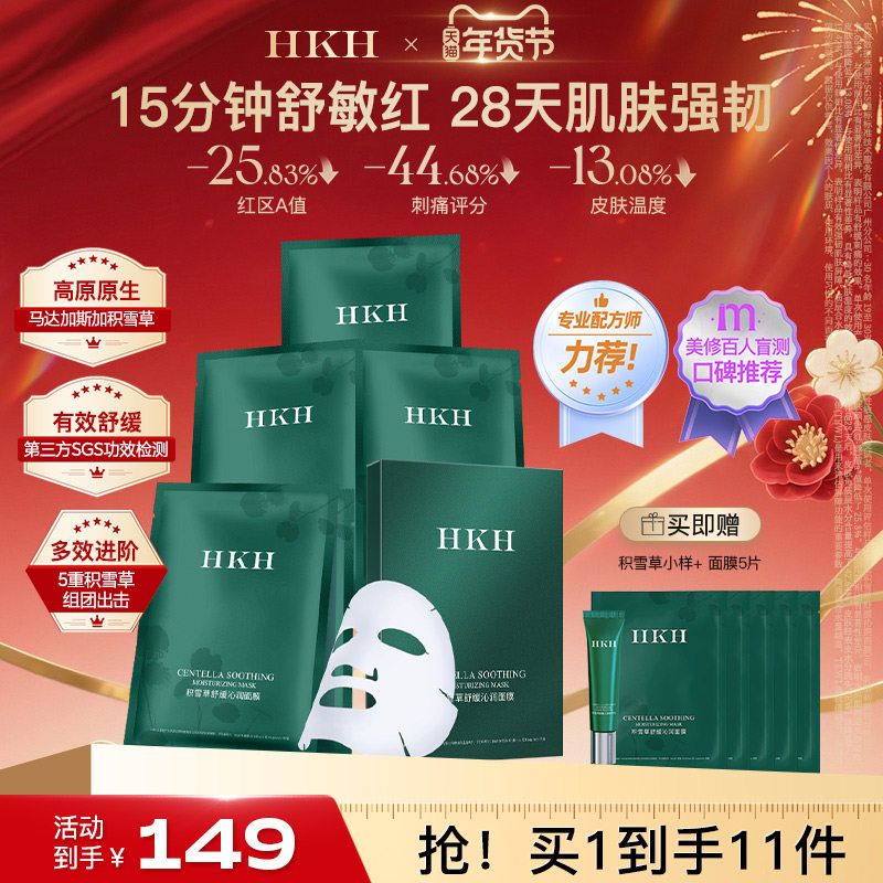 HKH积雪草面膜补水保湿舒缓改善脸部泛红维稳肌肤屏障