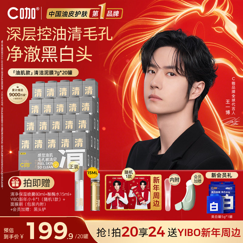 泥膜加强版】王一博同款C咖泥膜小罐膜清洁面膜控油毛孔黑头白泥