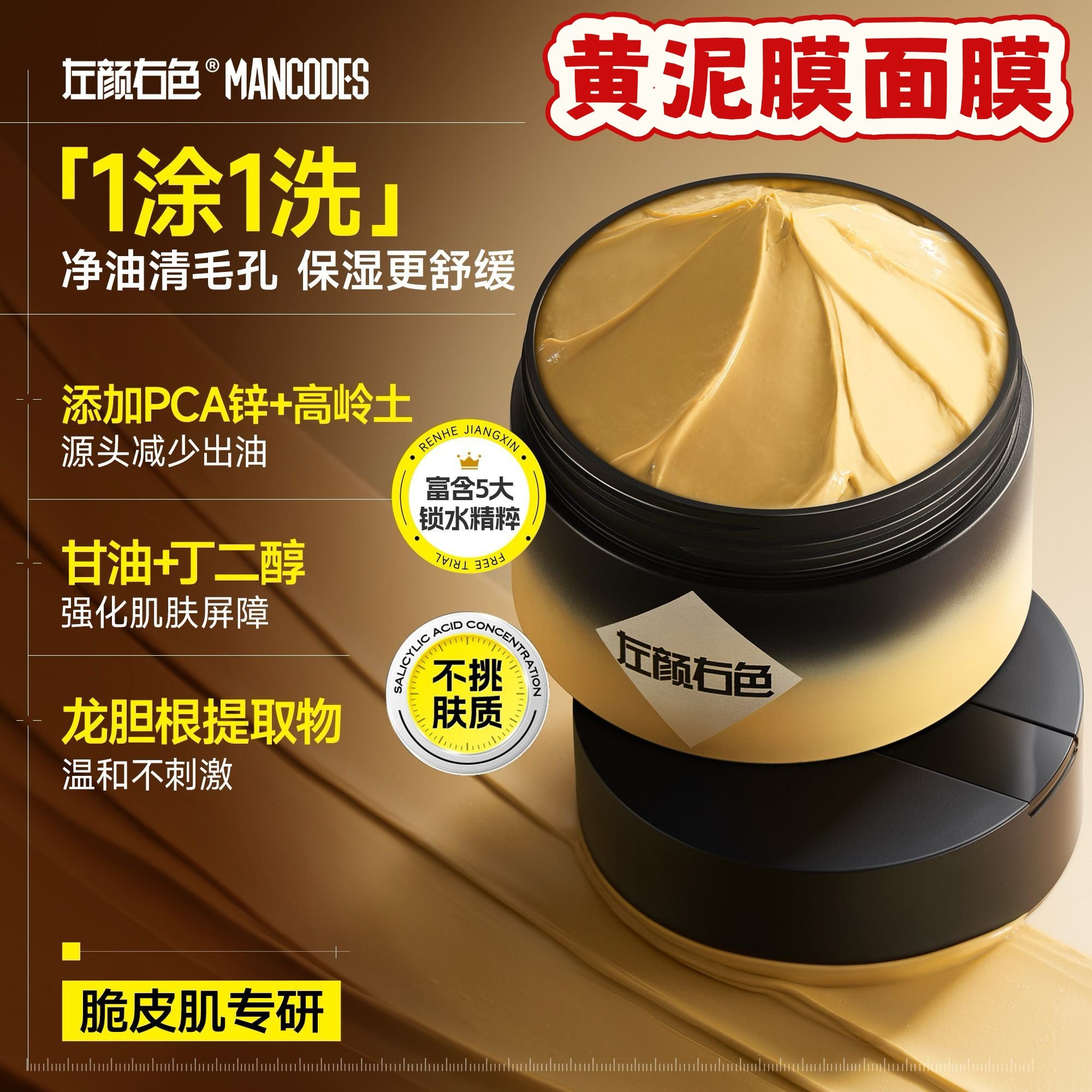 左颜右色三黄舒缓泥膜深层清洁控油保湿净毛孔涂抹式面膜男士专用