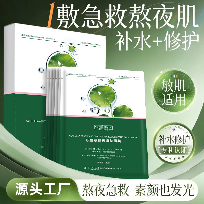 北欧青舍积雪草面膜晒后修复补水保湿敏感肌专用舒缓冷敷贴正品