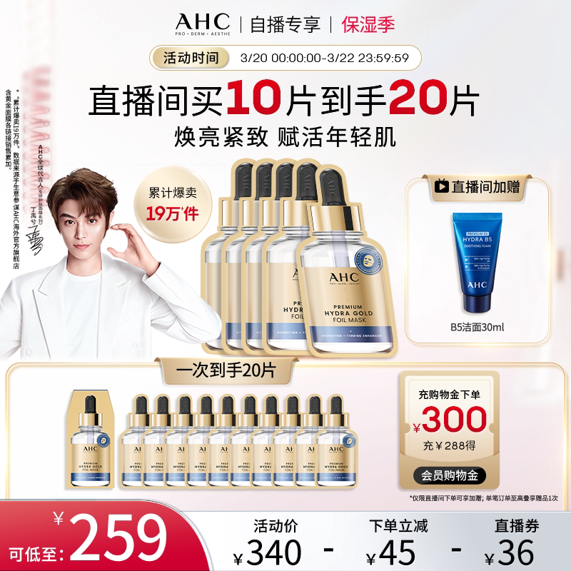 【直播专享】AHC黄金面膜4盒补水保湿焕亮女官方旗舰店正品