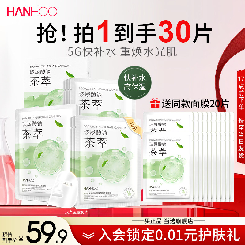 韩后水光面膜玻尿酸美白补水保湿熬夜学生女贴片护肤品官方正品