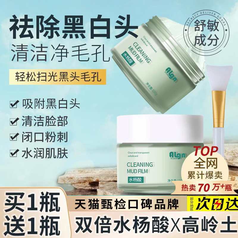 【买一送一】水杨酸泥膜面膜补水深层清洁收缩毛孔粉刺闭口正品