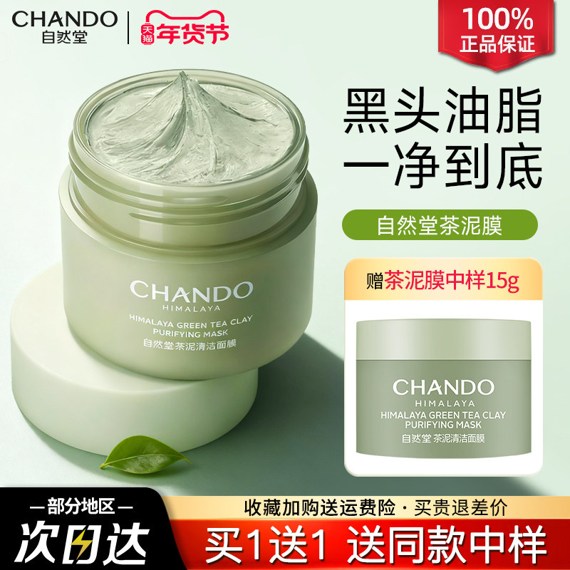 自然堂茶泥膜清洁面膜脸部涂抹式去黑头控油收缩毛孔深层清洁水洗
