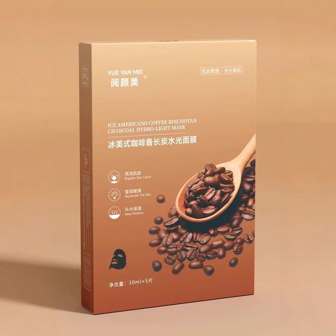5盒颜美冰美式面膜咖啡备长炭水光补水紧致肌肤提亮急救熬夜面膜