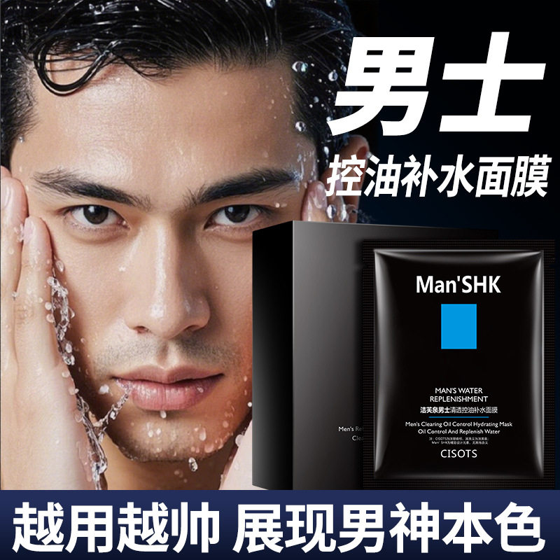 男士面膜 洁芙泉男士清透控油补水保湿隐形面部护理贴片面膜盒装
