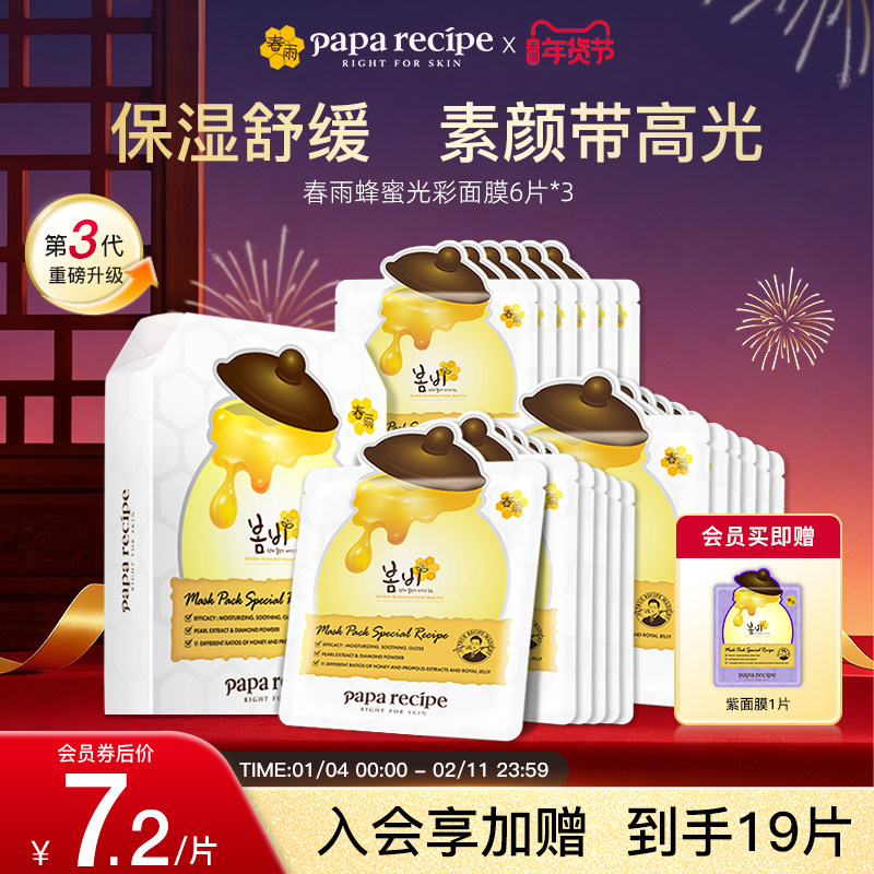 韩国paparecipe白春雨蜂蜜光彩面膜补水去黄气暗沉提亮肤色18片