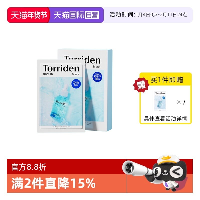 【自营】韩国Torriden桃瑞丹面膜10片装贴片玻尿酸精华液补水保湿