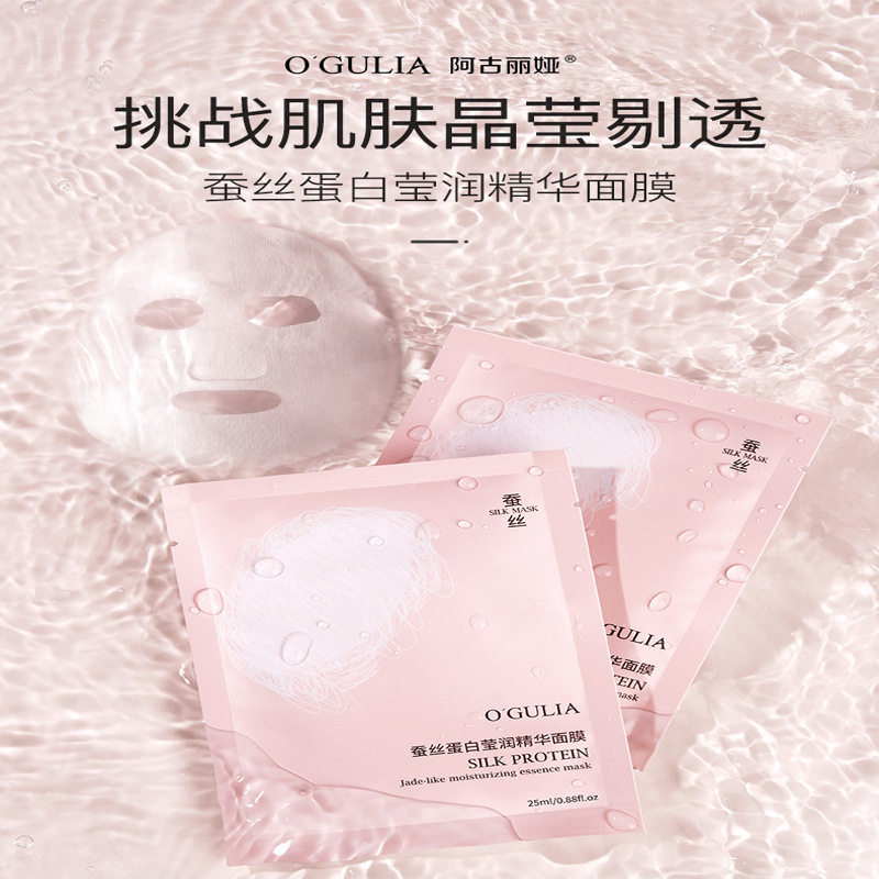 5盒阿古丽娅蚕丝蛋白莹润精华面膜 补水滋润嫩滑美肌护肤品