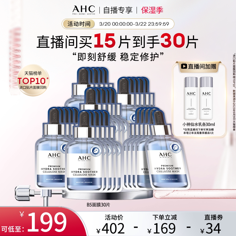 【直播专享】AHCB5玻尿酸安瓶面膜6盒补水保湿焕亮官方旗舰店正品