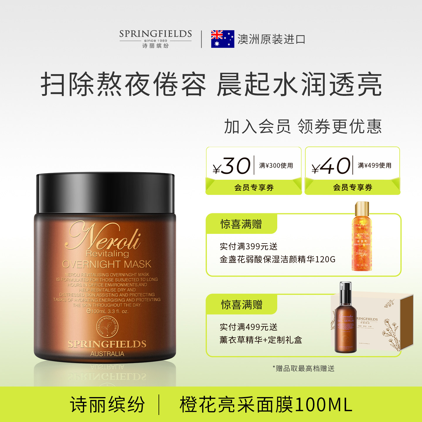 诗丽缤纷Springfields橙花金罐清洁泥膜睡眠涂抹面膜免洗补水保湿