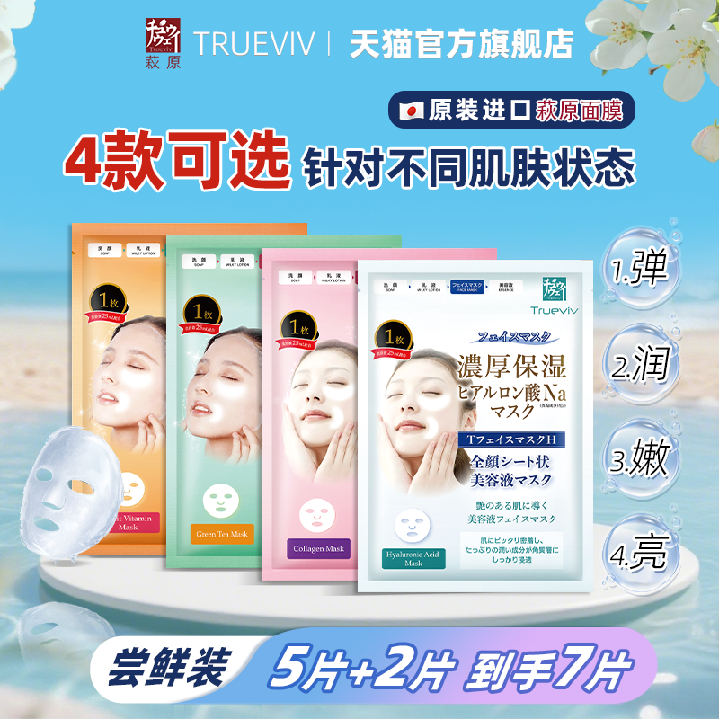 日本原装 萩原玻尿酸补水面膜单片保湿去黄提亮水润肌肤清痘7片