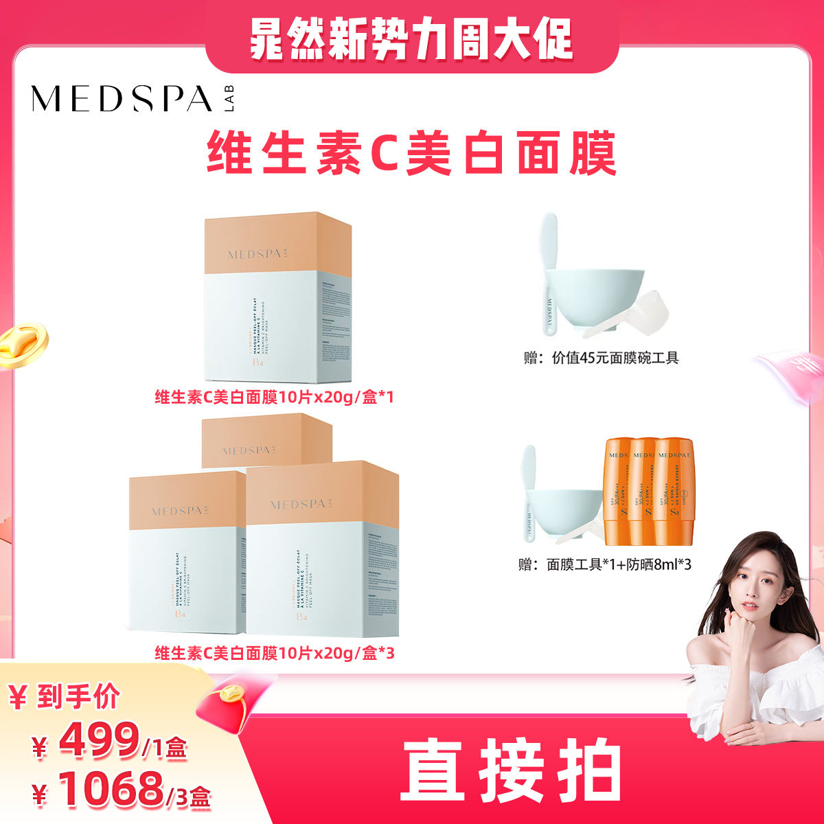 【晁然】MEDSPA法国美帕维生素C美白面膜盒装提亮涂抹软膜粉