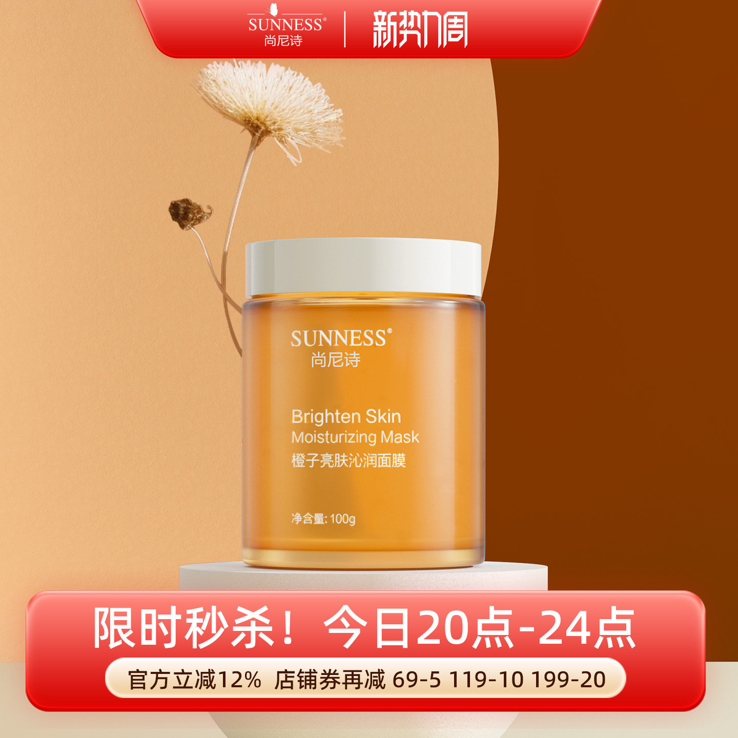 尚尼诗橙子面膜保湿补水提亮肤色祛黄收缩毛孔涂抹清洁养护熬夜肌