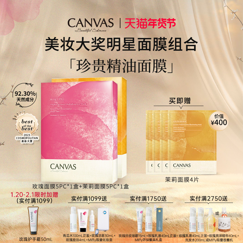 【美妆大奖】卡芬诗保湿补水提亮面膜组合 玫瑰茉莉精油敷膜贴片