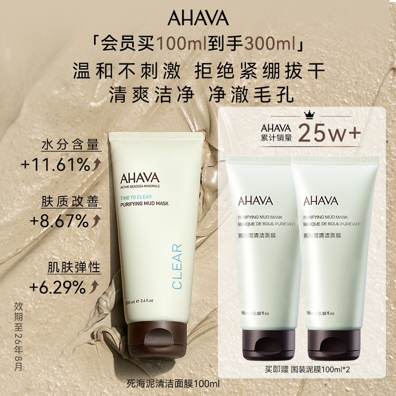 AHAVA死海泥清洁面膜紧致清洁泥膜毛孔黑头涂抹面膜